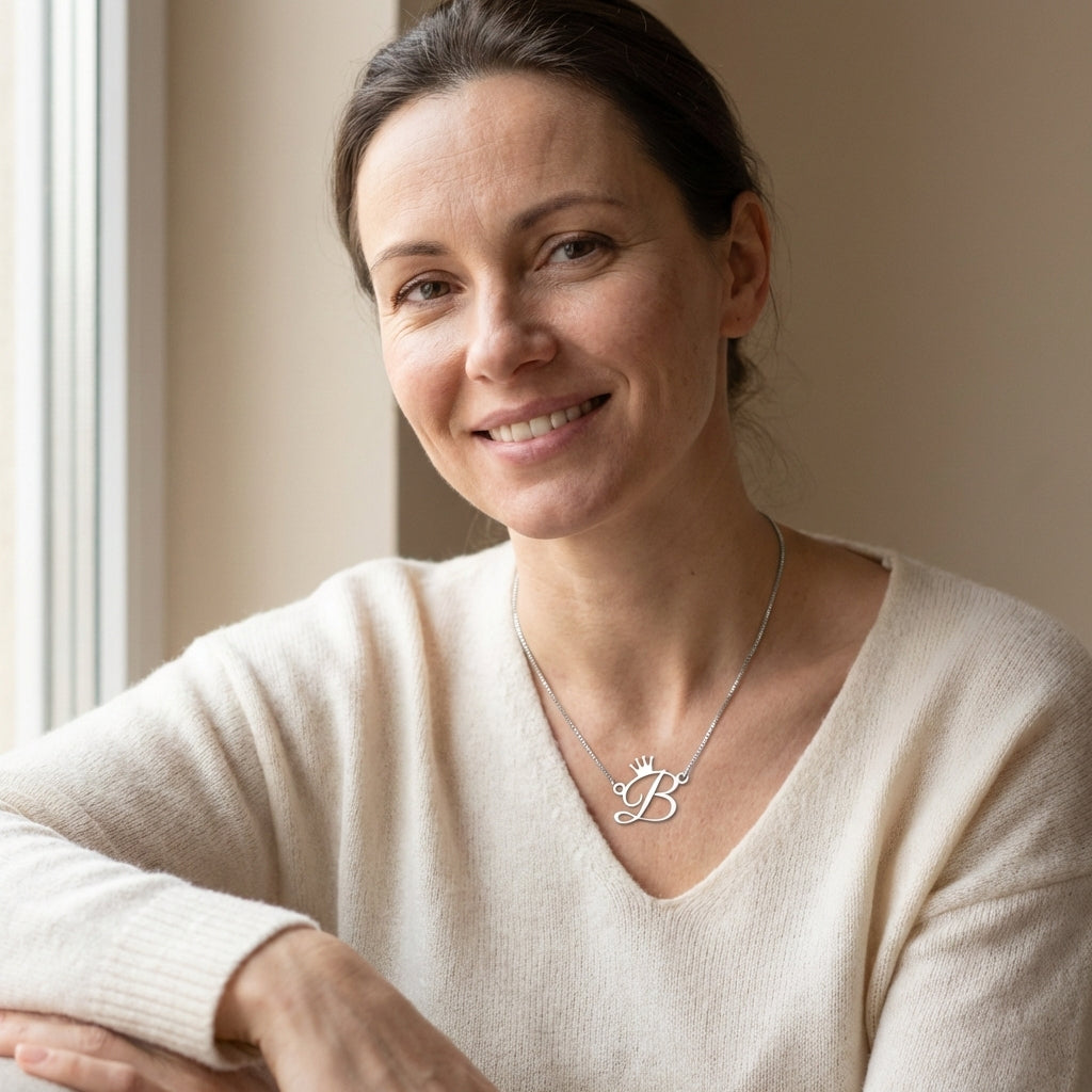 Engraved necklaces, bracelets, and rings with initials, names, or birthstones.